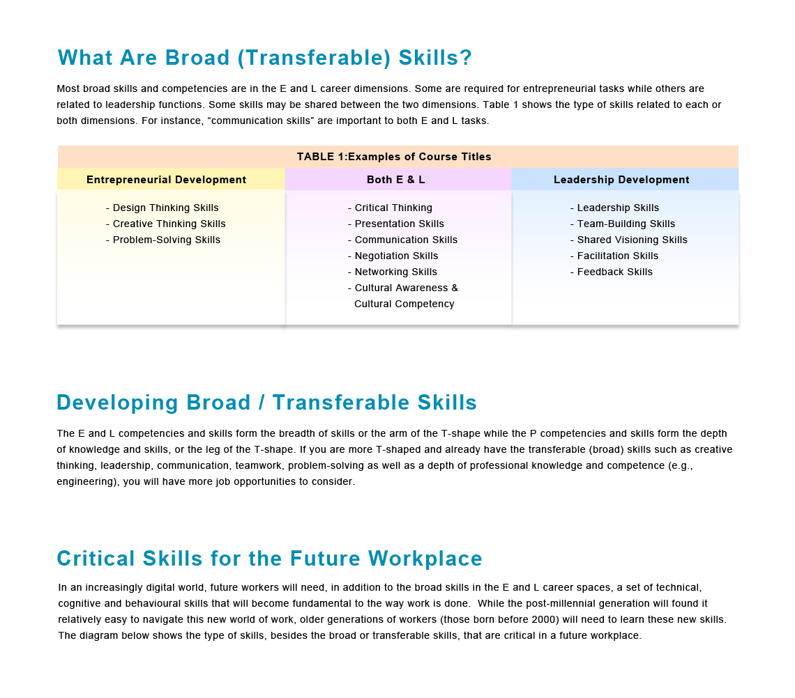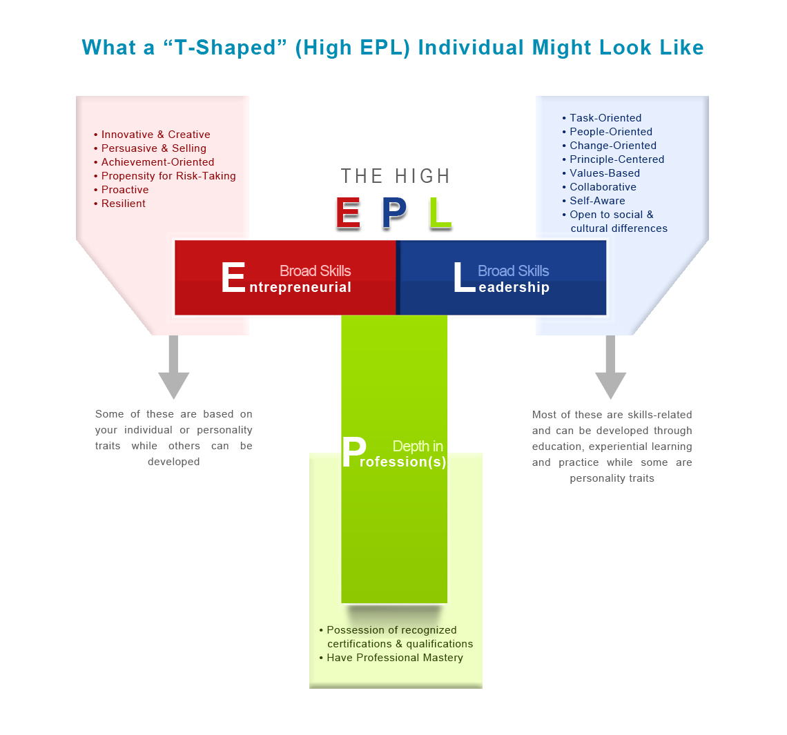 Employers will be looking to hire individuals who are more “T-shaped” (as opposed to “I-shaped”). T-shaped individuals are those who not only have the depth in their profession but also project a set of broad skills that enable them to adapt to a wide variety of work situations. Broad skills are also increasingly recognised as important to an organisation’s growth and sustainability.