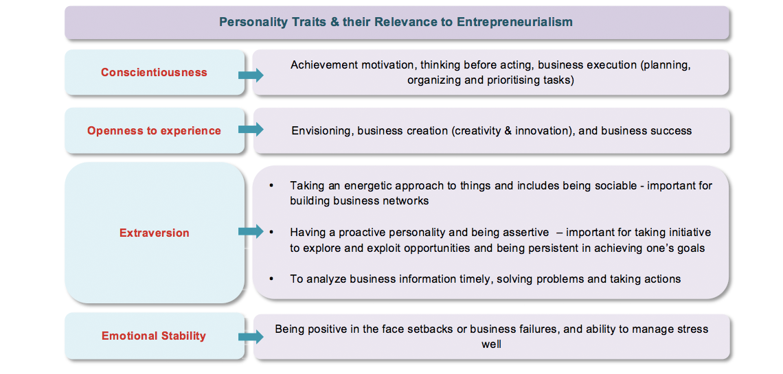 Brandstätter, H. (2011). Personality aspects of entrepreneurship: A look at five meta-analyses. Personality and individual differences, 51(3), 222-230.