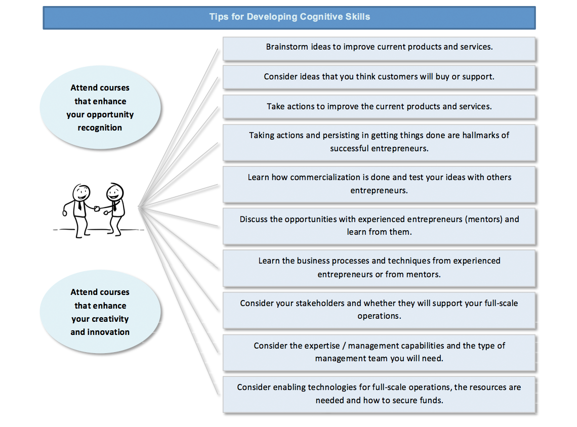 Exploring & Exploiting Opportunities. You could also practice the behaviours or cognitive skills of successful entrepreneurs. One way is to learn how to explore and exploit opportunities after you recognise the opportunity. You can practice this skill if you: